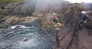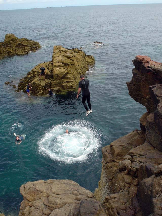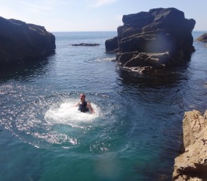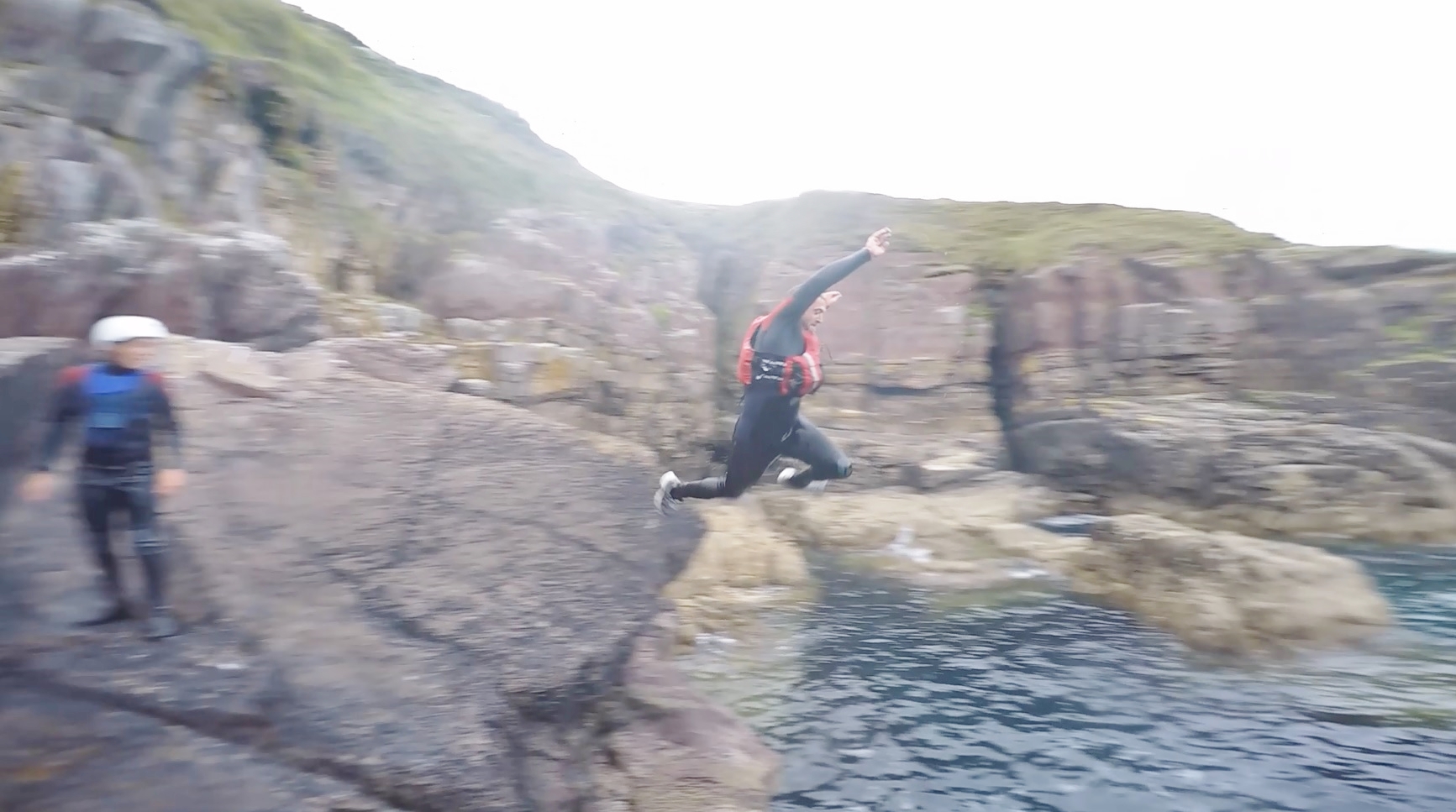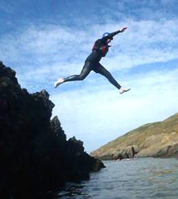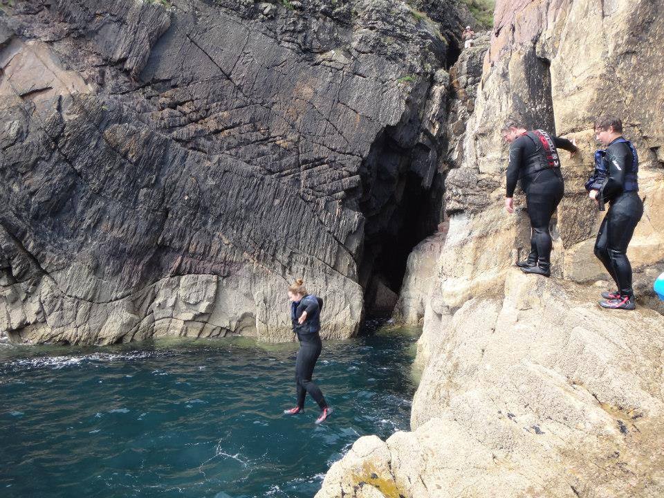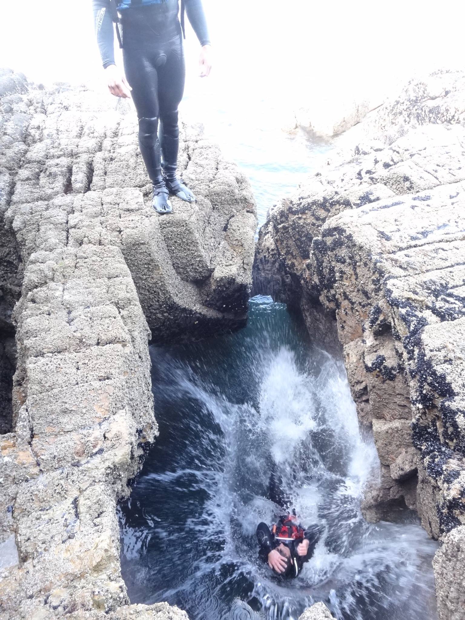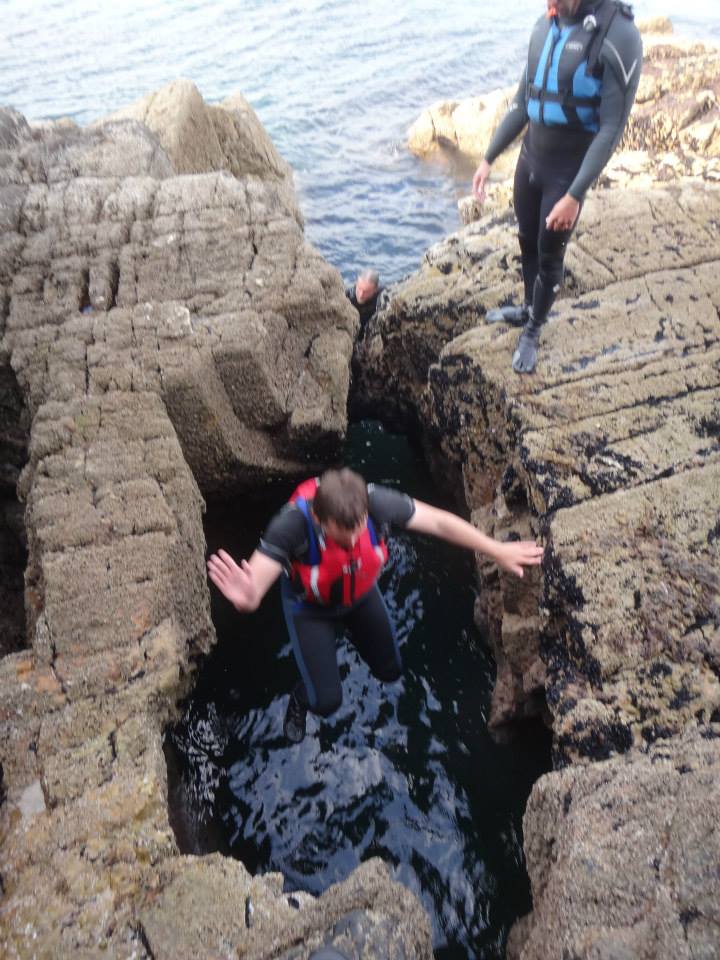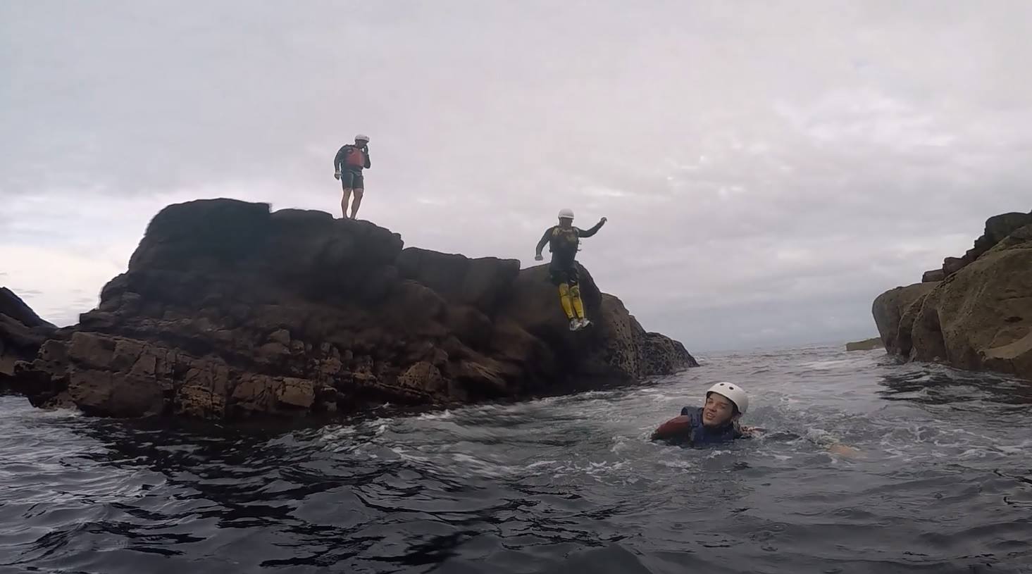 Coasteering involves swimming, clambering & climbing along tidal rocky coastlines.